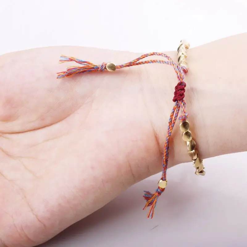 Ручной работы тибетский медный браслет из бисера буддийский плетеный хлопковый веревочный браслет для защиты удача успех амулет