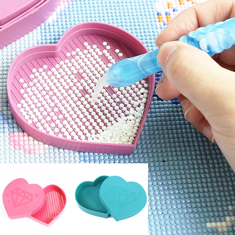 В форме сердца сверла алмазные лоток коробка, сделай сам, инструменты для вышивки картин со стразами аксессуары Наборы вышивка ручка пластина клей, алмазная живопись чехол