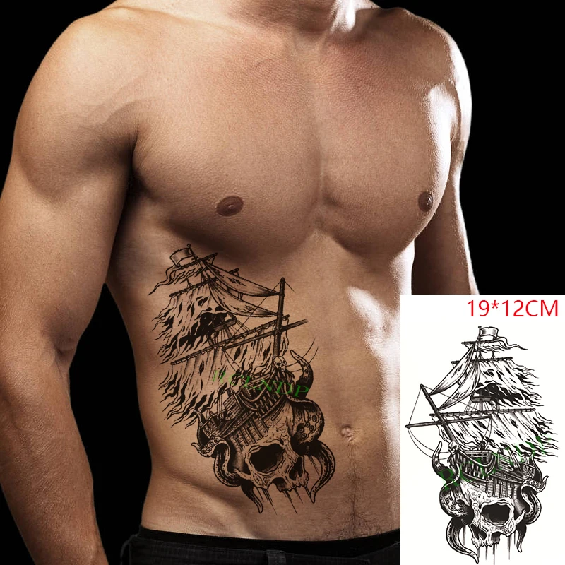 Водостойкие временные тату-наклейки, Череп, пиратский корабль, флэш-тату, задняя нога, боди-арт для женщин и мужчин