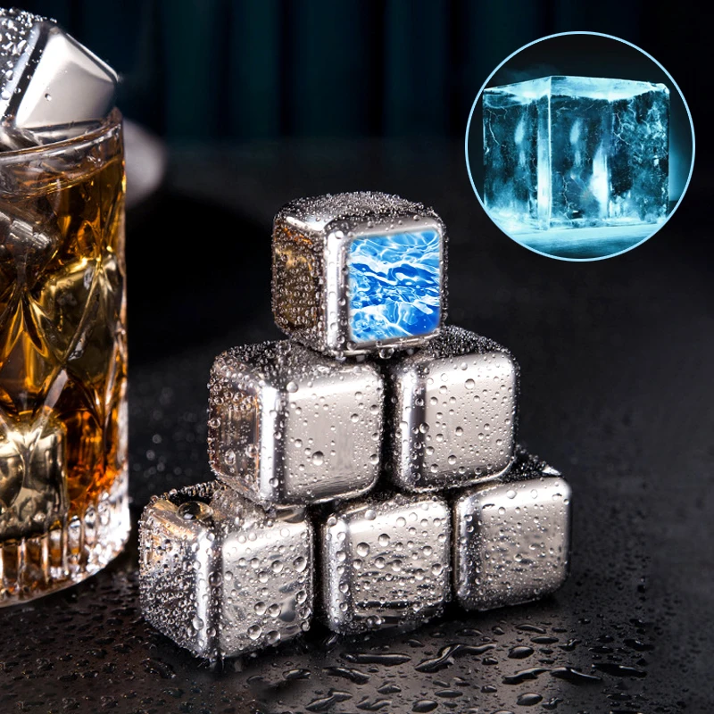Многоразовые металлические квадратные быстрозамороженные кубики льда из нержавеющей стали 304 для охлаждения виски