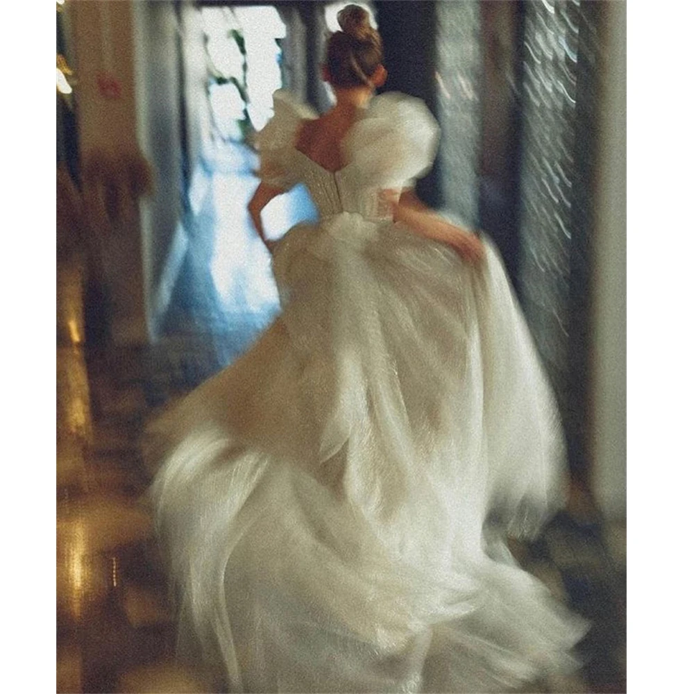 Мягкие длинные пляжные свадебные платья с открытыми плечами с пышны...