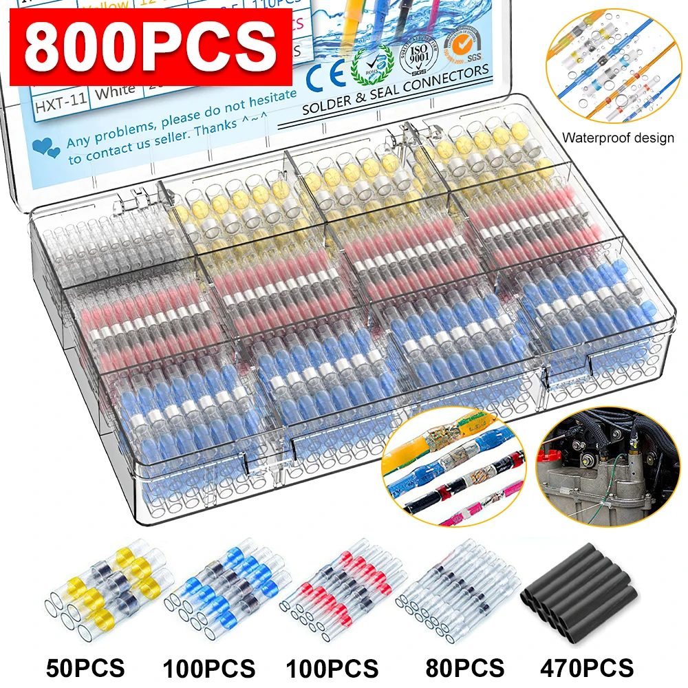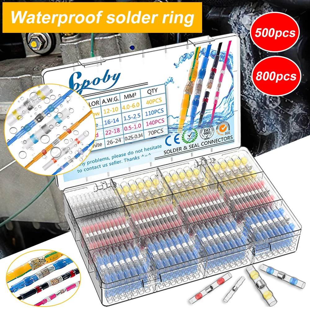 800/500/250/100 шт. термоусадочные обжимных разъёмов, коннекторов для Водонепроницаемый припоя уплотнения электрические стыковые соединители кабеля с Terminal Kit
