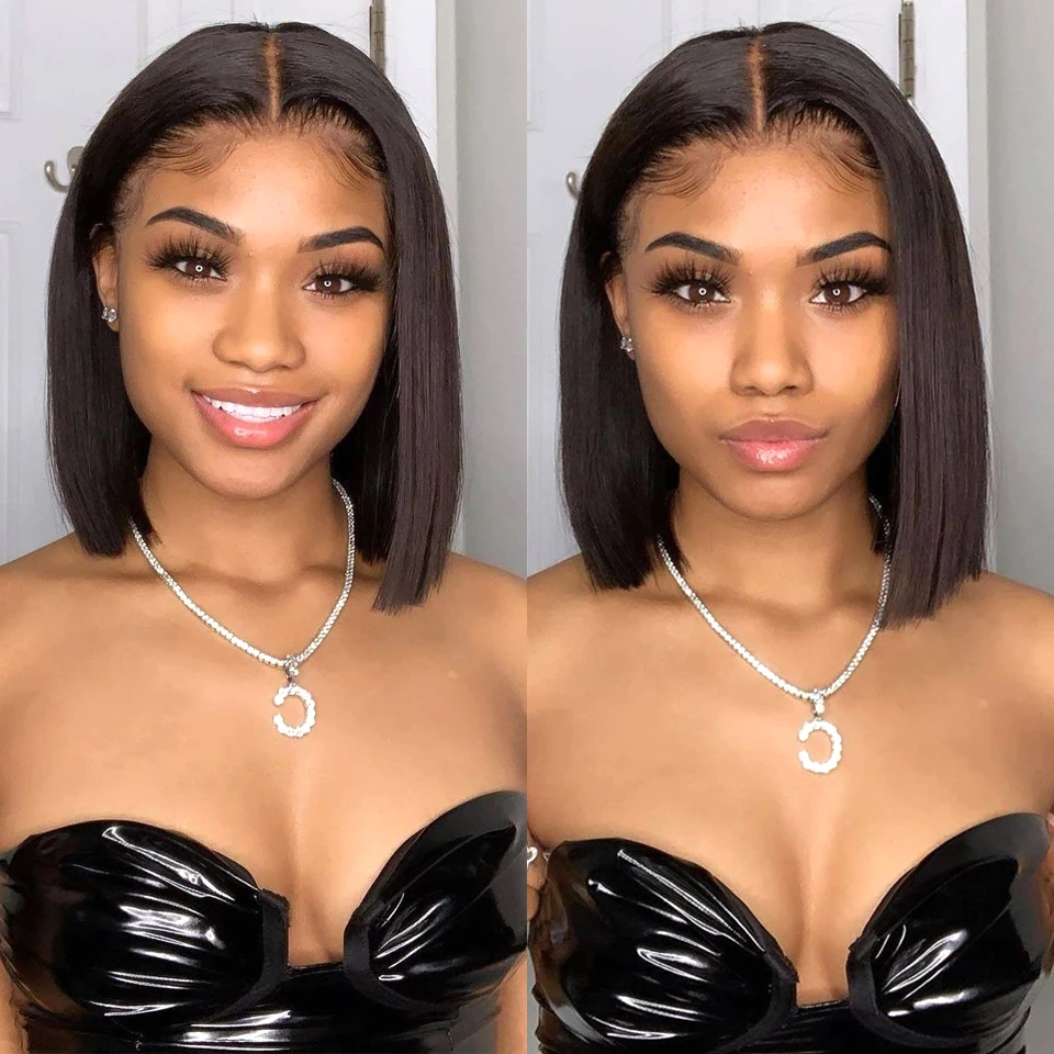 150 плотность короткий Боб прямые кружевные передние человеческие в...