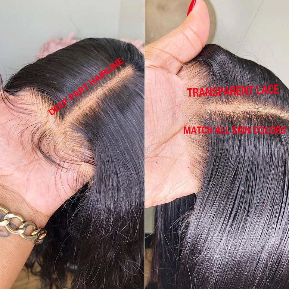 Парик из человеческих волос с прямыми косточками, парики с прозрачн...