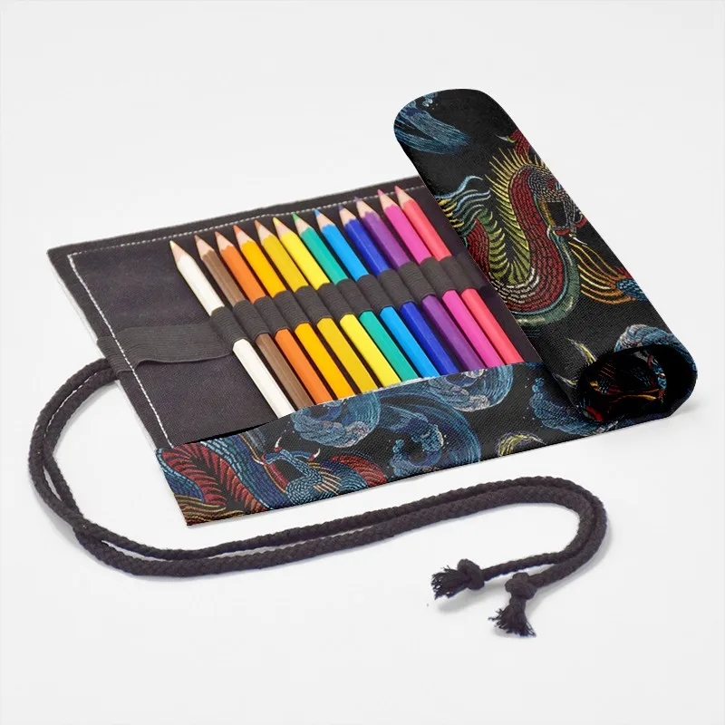 Дракон отпечатанные рулон Карандаш Чехол для школьника 12/24/36/48/72 отверстия школьный пенал из Ткани в стиле унисекс искусство рисования, пакет для канцелярских товаров