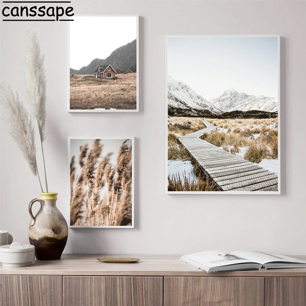 Пейзаж, настенные художественные картины, тростник, сено, печать на холсте, морские волны, плакаты, принты чайки, Скандинавская живопись, мертвая трава, картины, декор комнаты