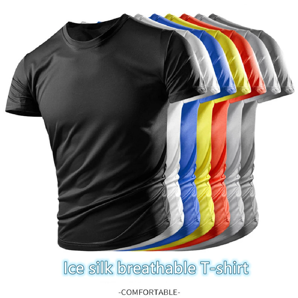 Летняя дышащая футболка из ледяного шелка, Мужская футболка с коротким рукавом, быстросохнущая свободная спортивная одежда, футболки холодного ощущения