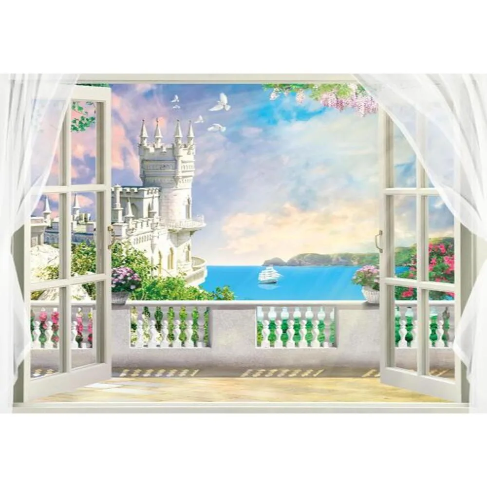 Allenjoy Летний Пляжный фон Тропическое море окно море дерево балкон остров Природный фон для вечерние съемки вечеринки
