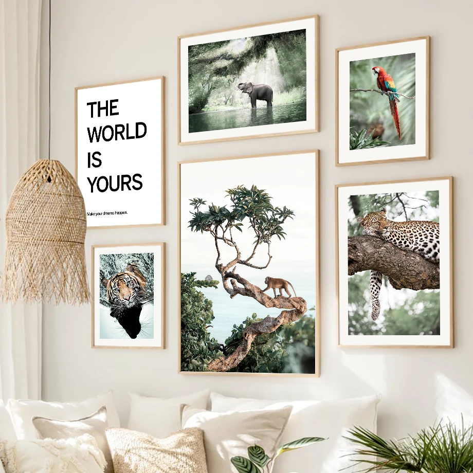 Лев Слон крокодил Тукан Пальма цитаты настенная живопись на холсте ...