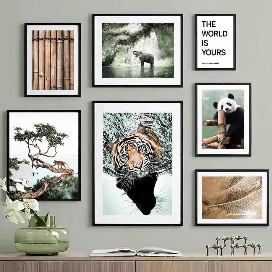 Черно-белый слон Обезьяна Тигр Жираф настенная Картина на холсте ск...
