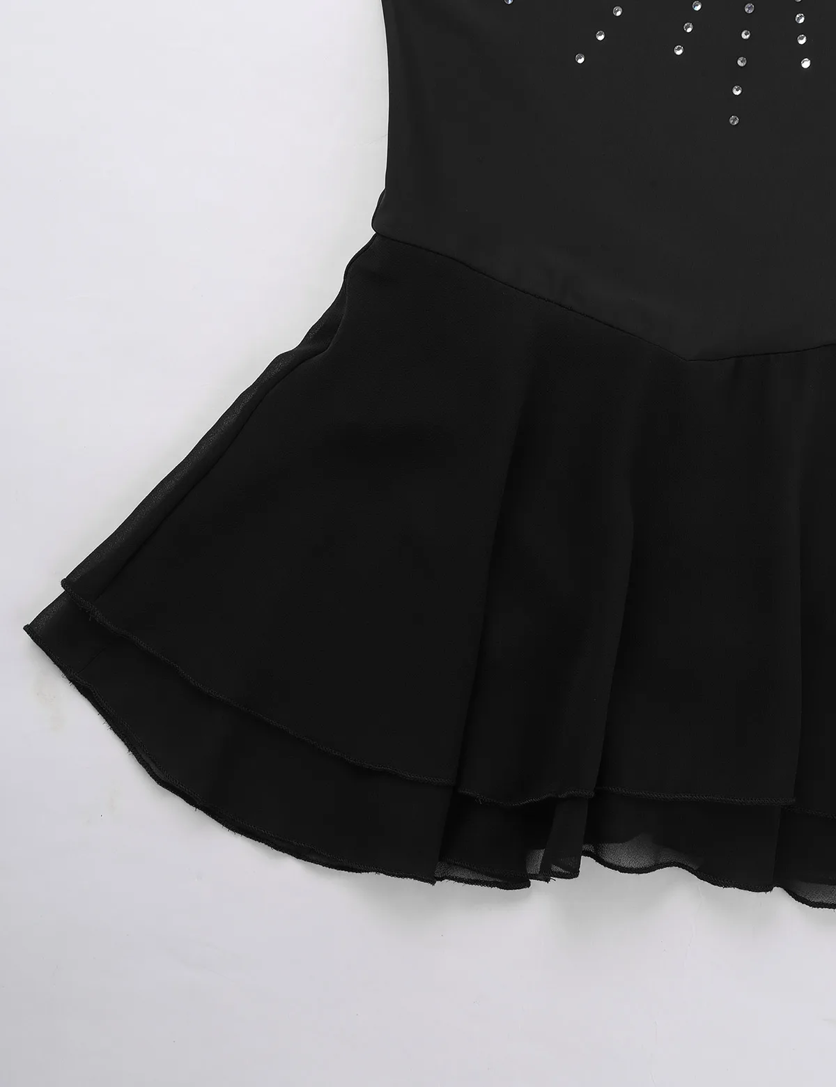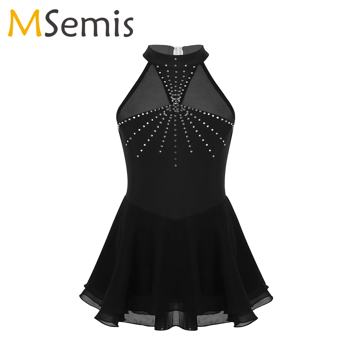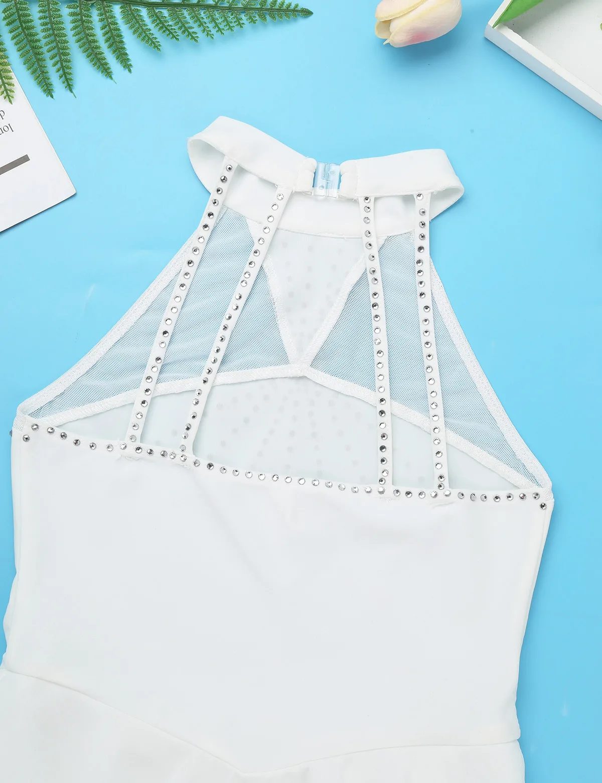 Детское платье для девочек без рукавов, с лямкой на шее к требованиям заказчика; Сверкающие стразы сращивания тренировочная одежда для занятий гимнастикой Фигурное катание на коньках балетное платье для танцев