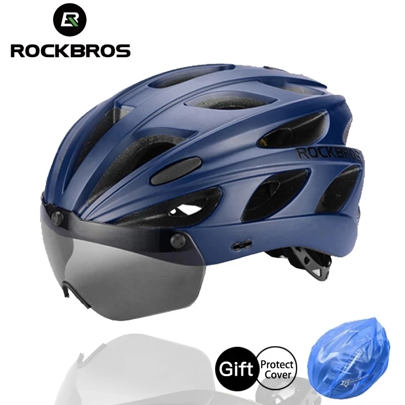 Велосипедный шлем ROCKBROS для мужчин, интегрированный дышащий шлем из пенополистирола с линзами для очков, для горных и шоссейных велосипедов, для активного отдыха