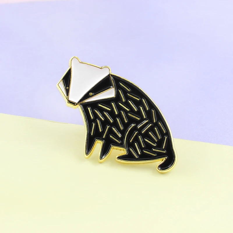 Эмалированная булавка в форме барсука, черная булавка с золотым кра...