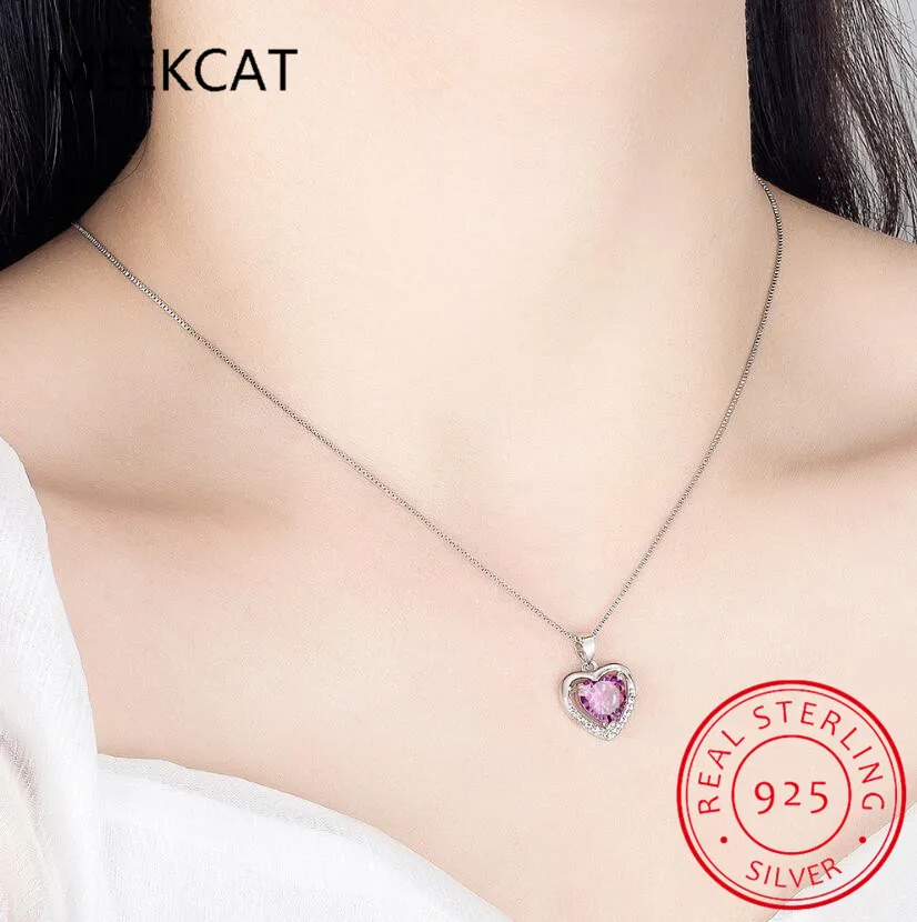 925 стерлингового серебра 2021 новые женские модные ювелирные изделия высокого качества, цвет: голубойфиолетовыйбелого цвета с украшением в виде кристаллов Циркон полые, стильный элегантный кулон "Сердечко"