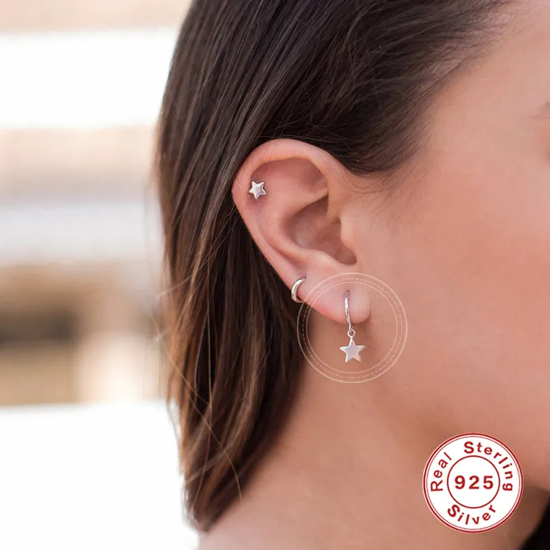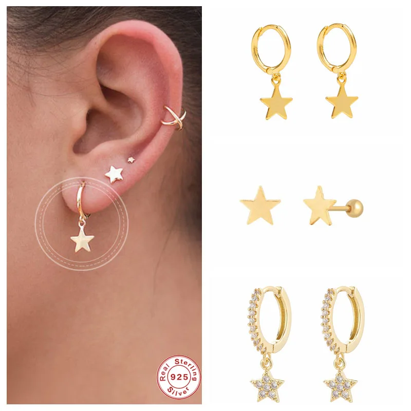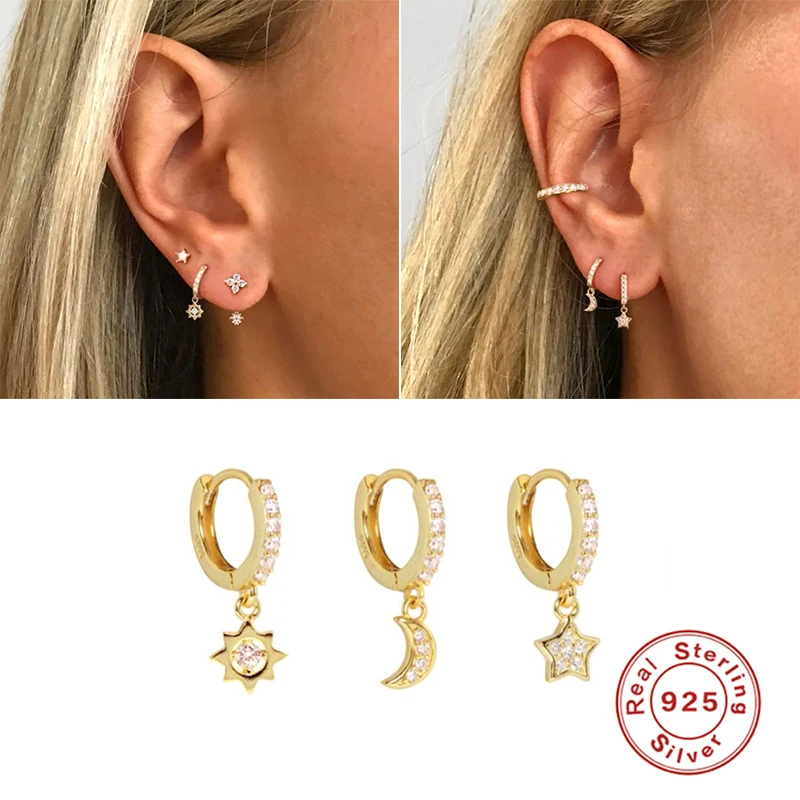 Aide 925 стерлингового серебра Классический Циркон Подвеска Звезда Луна Серьги-кольца для женщин с украшением в виде кристаллов серьги пентаграмма ювелирных изделий Pendiente