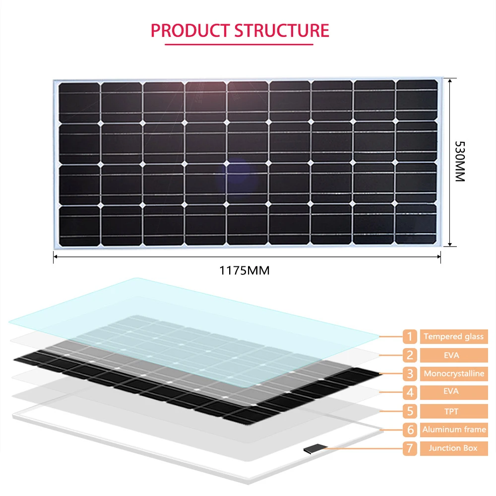 300 Вт солнечная панель батарея 12V 24V комплект стекла высокоэффективное монокристаллическое PV зарядное устройство Удлинительный кабель для лодки автомобиля домашней системы