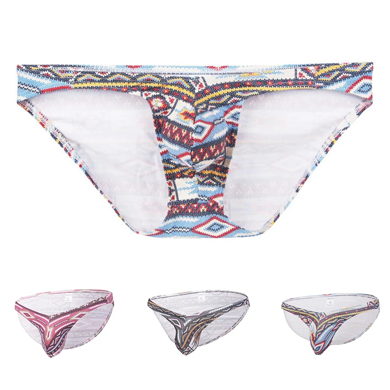 Пикантное Мужское нижнее белье с U-образным выпуклым мешочком, модное бикини с принтом, мужские трусы, удобные дышащие качественные мужские трусы
