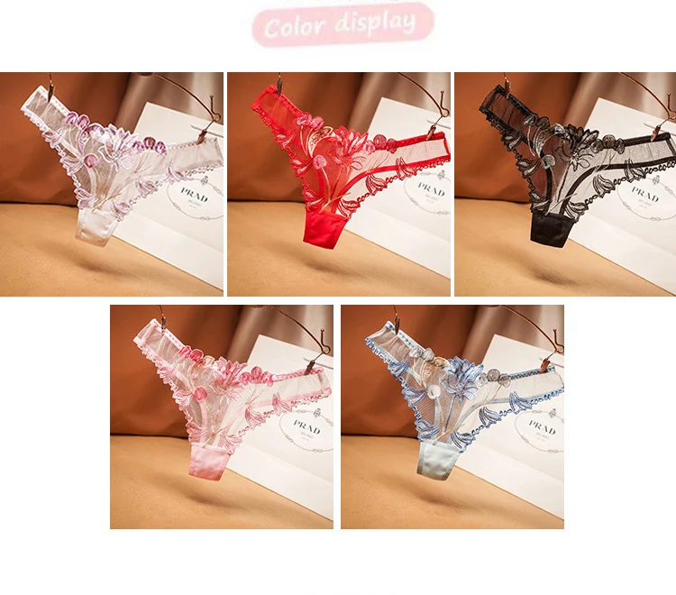 Сексуальные кружевные женские трусики с вышивкой, прозрачные стринг...