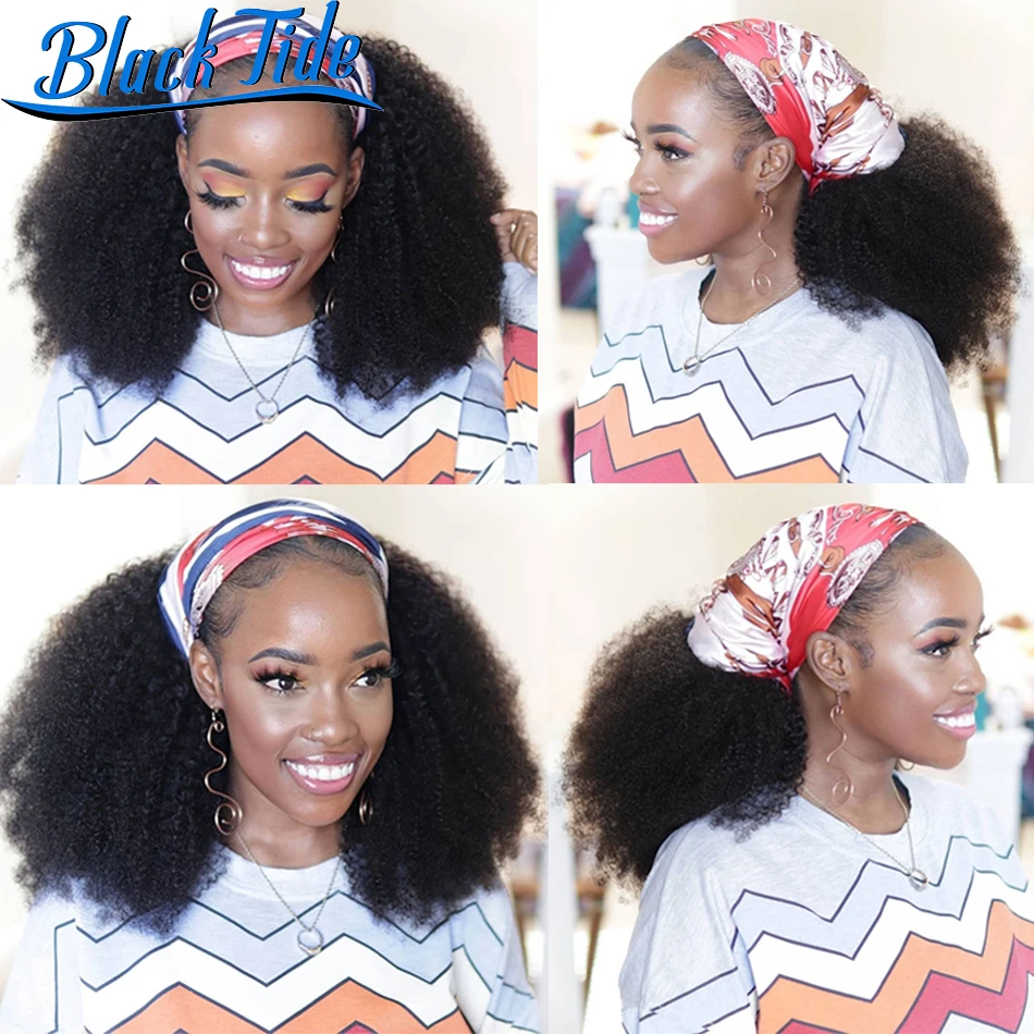 Повязка на голову парик афро кудрявый вьющиеся парик с головной повязкой, несекущиеся бразильские парик с головной повязкой 150% парик с головной повязкой человеческие волосы курчавые вьющиеся парик с головной повязкой s