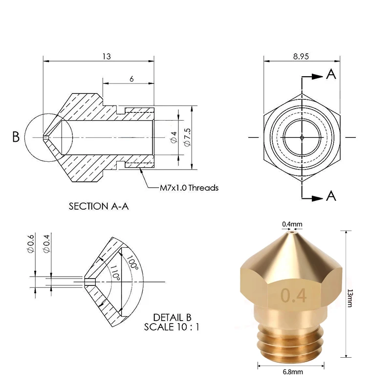 Сопло MK10 для 3D-принтера, 10 шт., MK10 M7, сопло экструдера, 0,4 ...