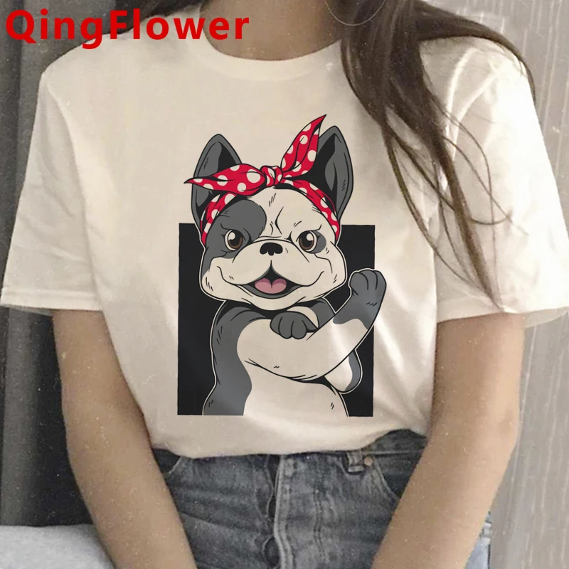 Kawaii Французский бульдог футболка для женщин harajuku kawaii tumb...