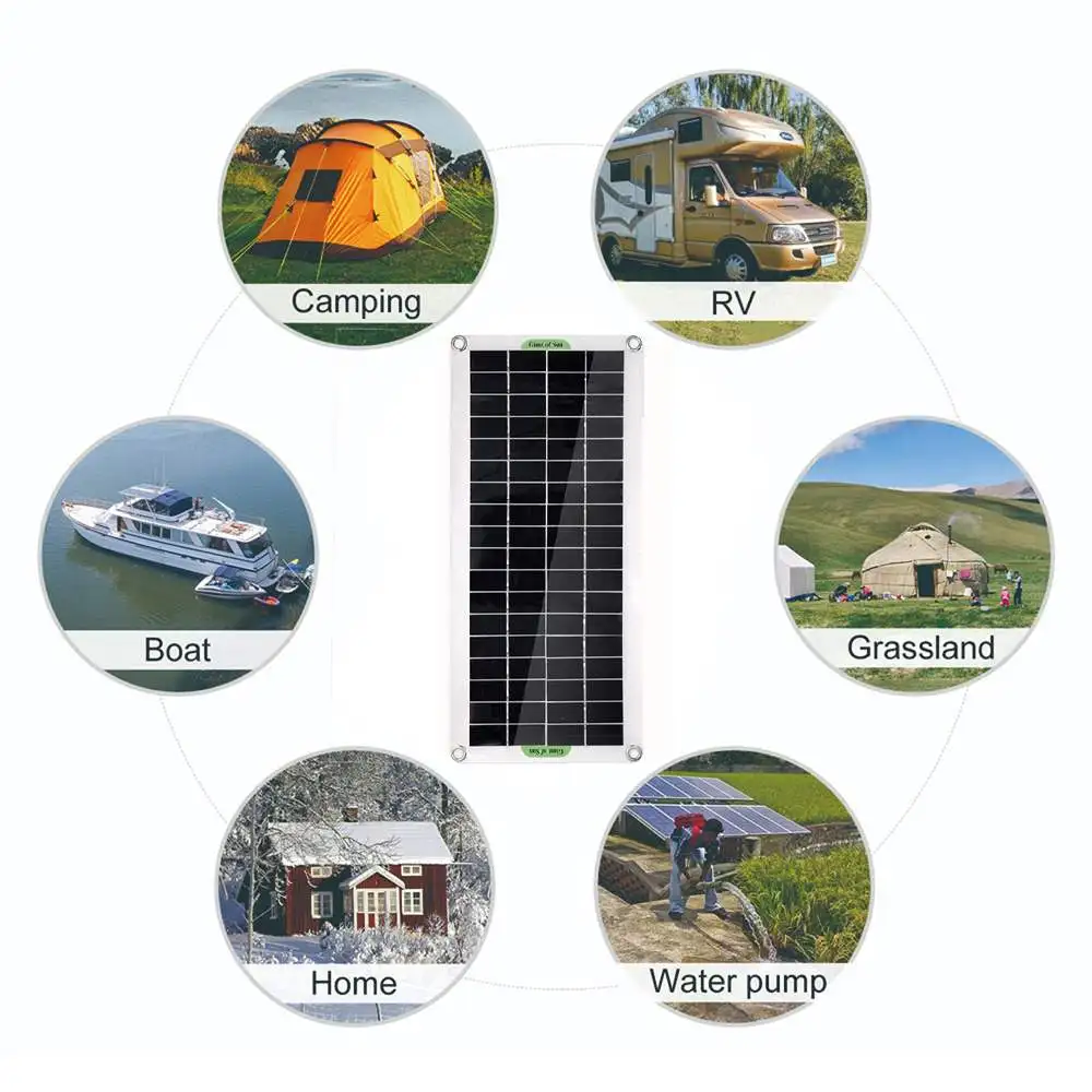 Характеристики:Панели солнечныеМощность: 50 ВтРазмер: 430x200x30 ммВодонепроницаемость: IP65Коэффициент конверсии: 19,6-20%Материал: монокристаллический силиконовый аккумуляторРаспределительная коробка: IP67 RETEDРабочая температура: -40 ℃ + 85 ℃Область применения: велосипед, альпинизм, туризм, кемпинг, путешествия и т. Д.