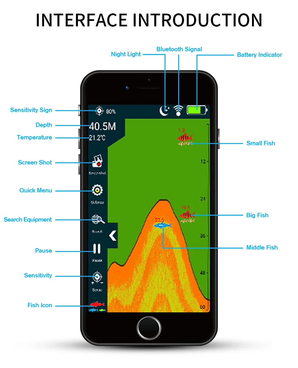 Erchang XA02 портативный рыболокатор Bluetooth беспроводной эхолот Sonar сенсор глубина рыболокатор для озерной морской рыбалки
