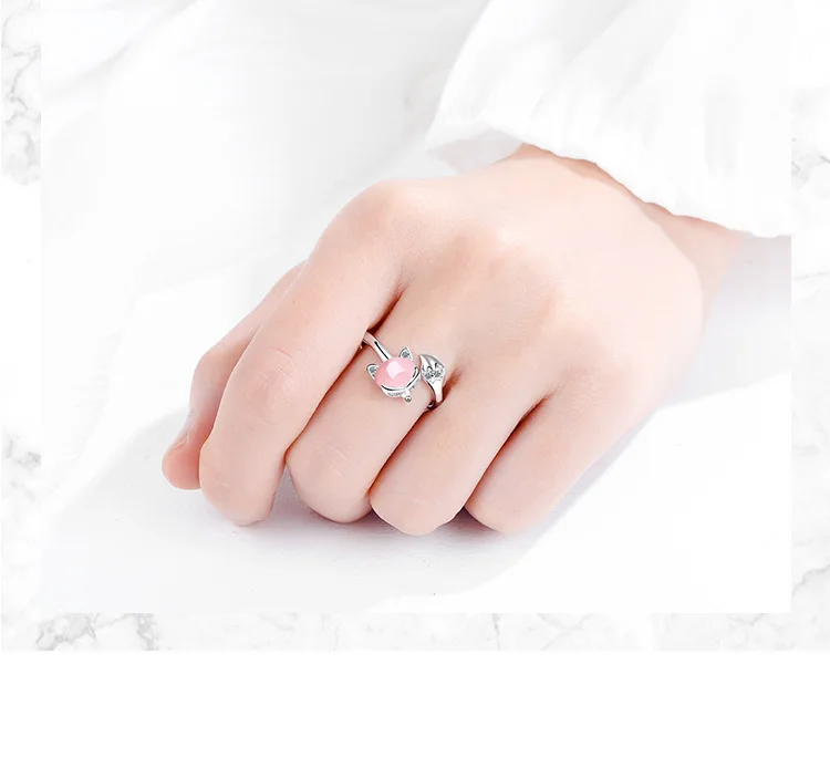 Кольцо женское регулируемое в виде лисы, розового цвета