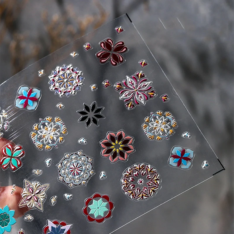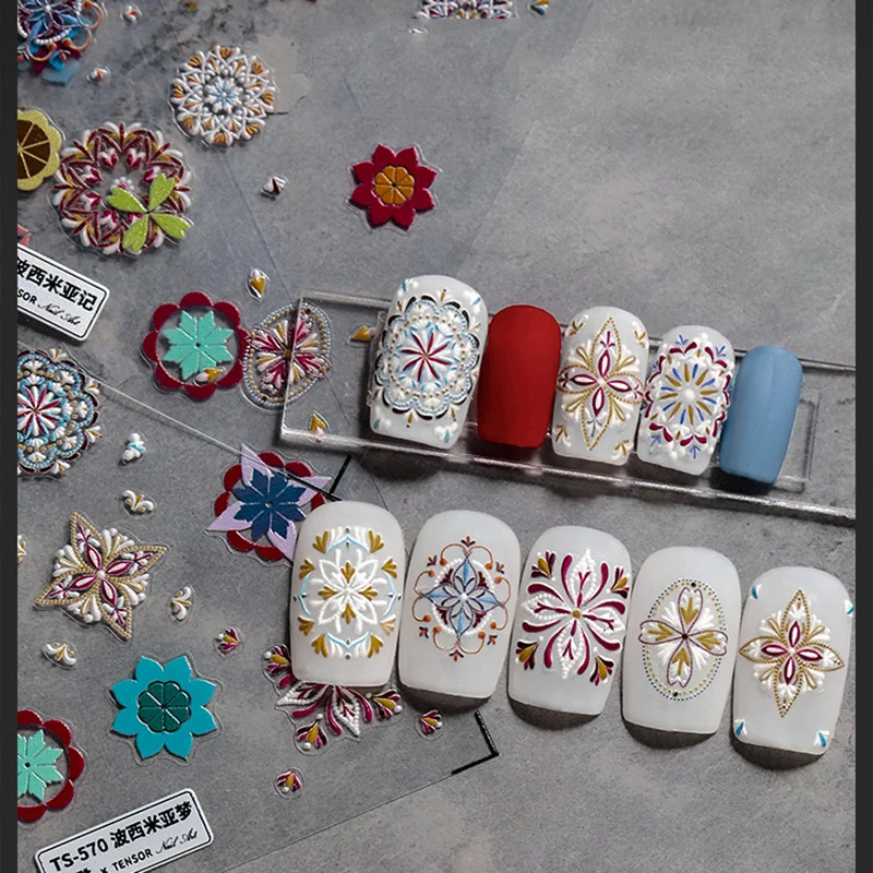 Новинка, Выгравированная 5D наклейка для ногтей, Богемские красочные цветы, изображение, очаровательный дизайн, прозрачные наклейки для ногтей Z0457