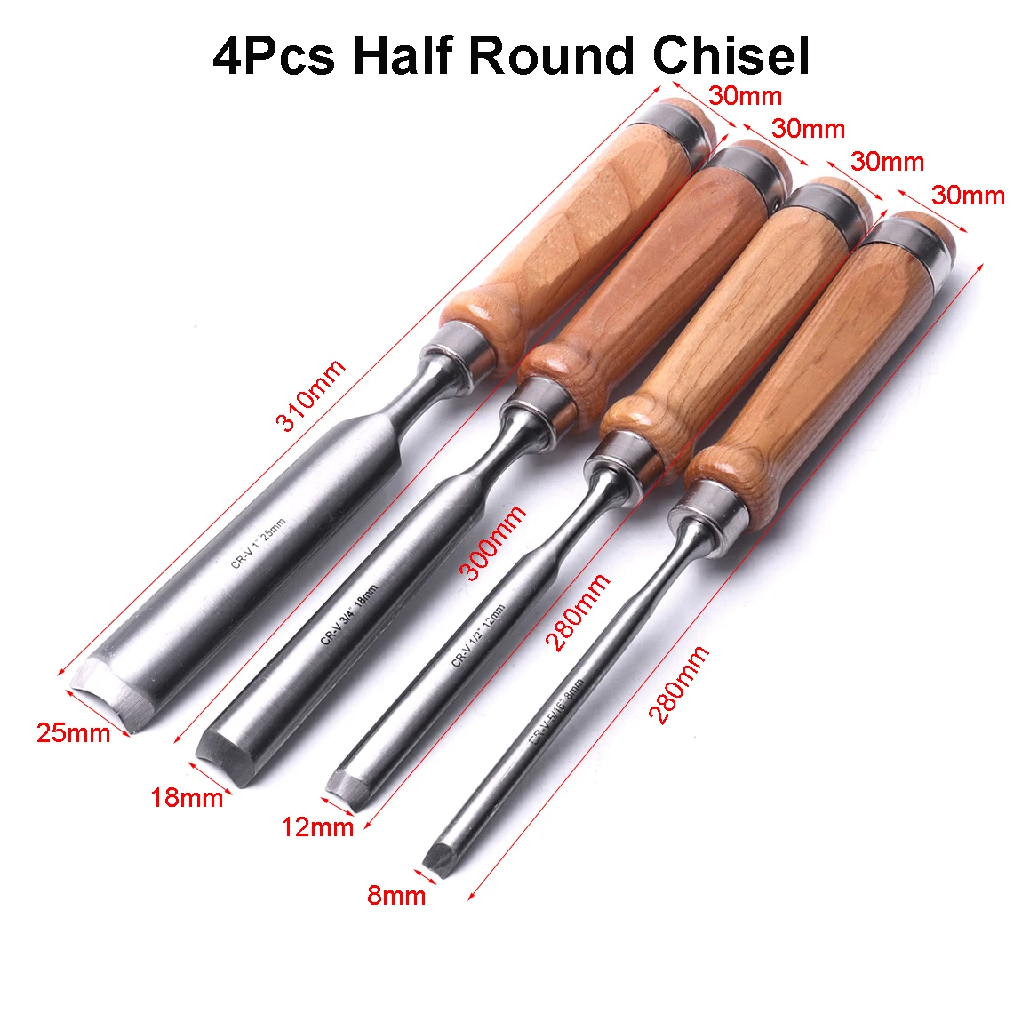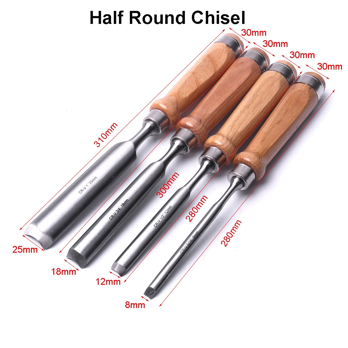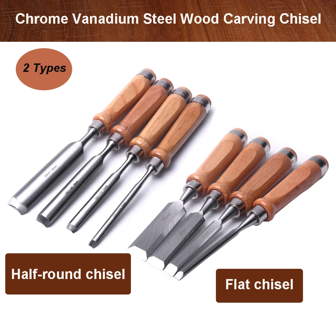 Прочный хром-ванадиевая сталь Сталь стамеска плотникам резьба по дереву DIY плоскийподъемный полукруглый деревообрабатывающие долота 6812181925 мм