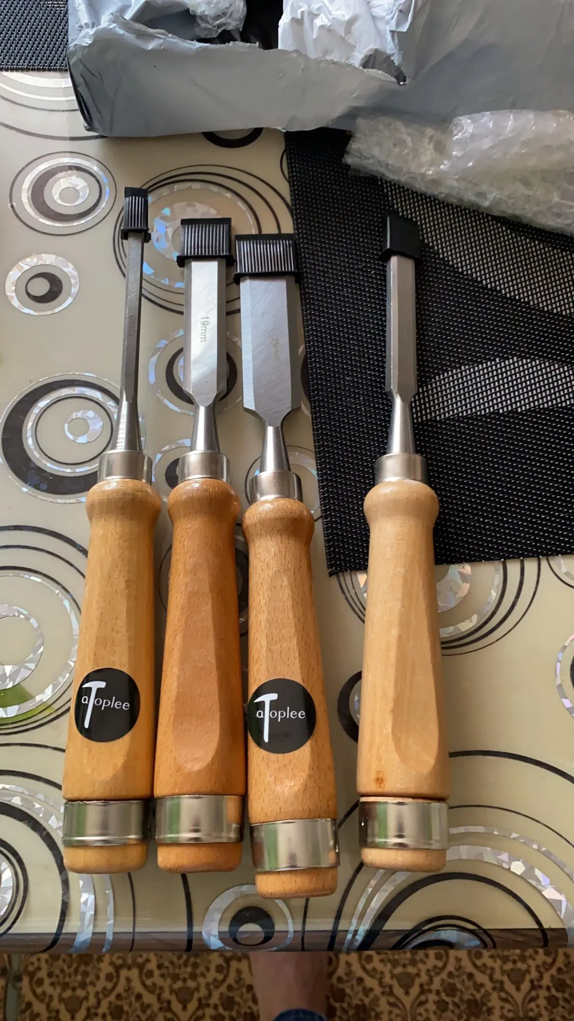 На одной стамеске есть небольшое пятнышко ржавчины , ну а так вроде не плохие на вид . В деле ещё не продавали ! Понравилось что есть чехольчики .! Шло конечно 45-46 дней но это из за нашей сортировки на почте , а так продавец хороший советую !!!