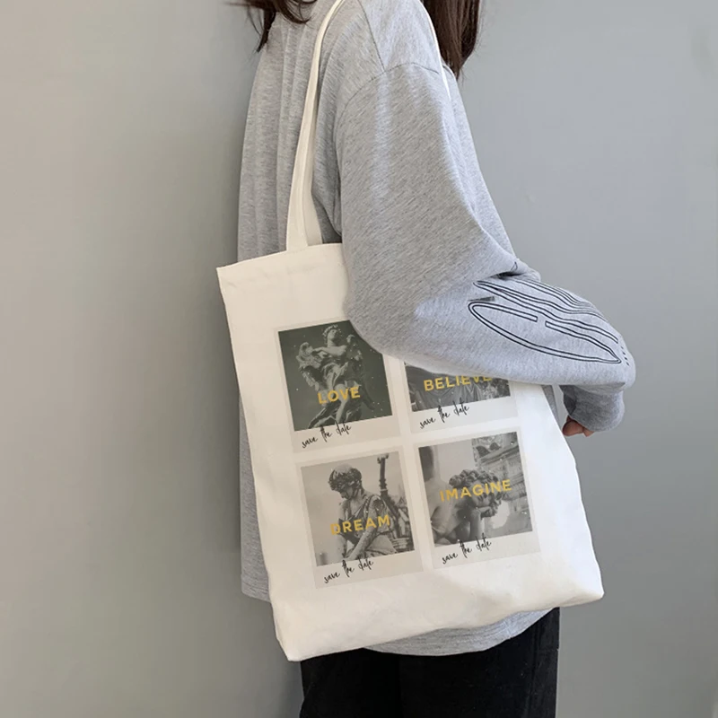 Микеланджело Давид Искусство Письмо Печать забавная повседневная большая вместимость Harajuku винтажные Ins модные холщовые женские шикарные сумки через плечо