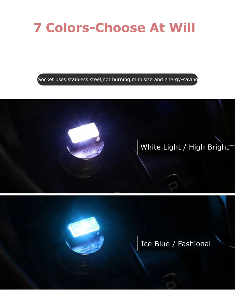 Светодиодсветильник мини-лампа для салона автомобиля, 7 цветов