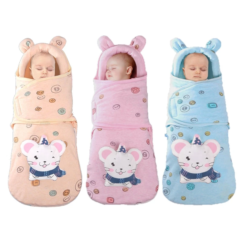 Одеяло для новорожденных, пеленка для малышей, хлопок, милые Мультяшные зимние теплые спальные мешки, спальный мешок, накидка на детскую коляску