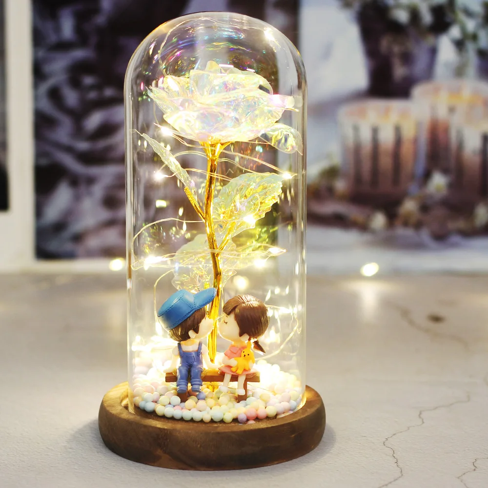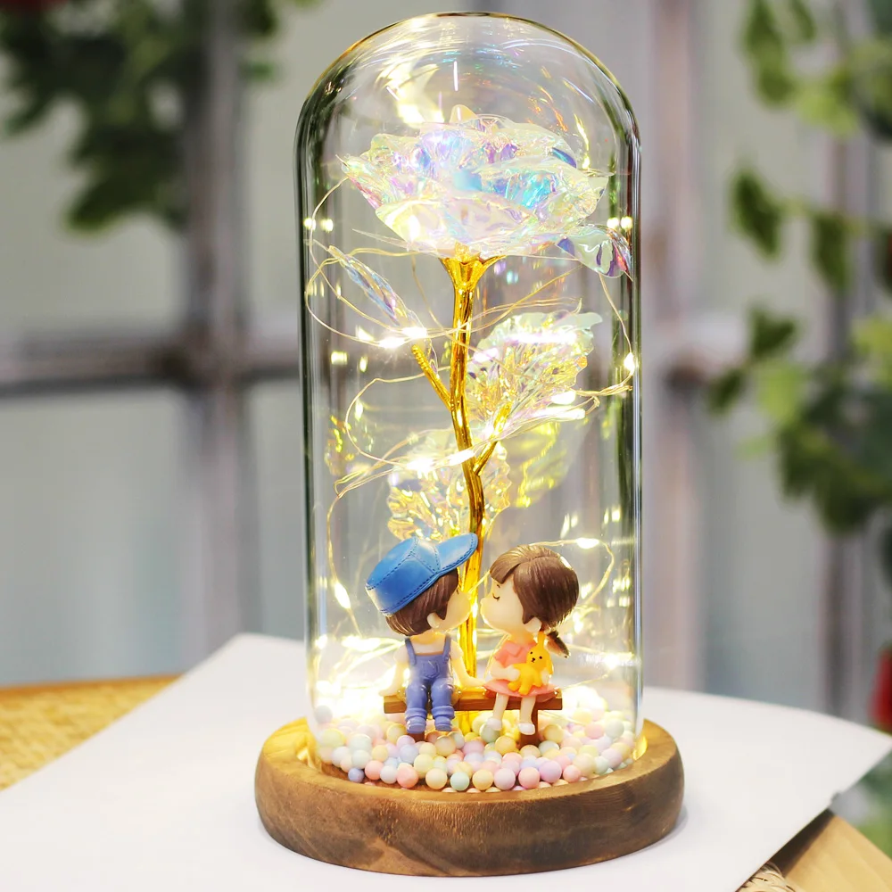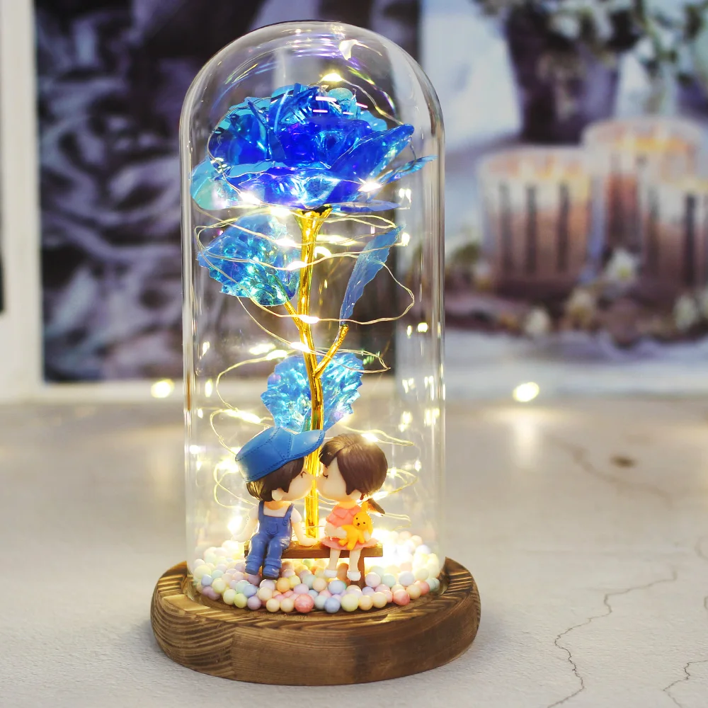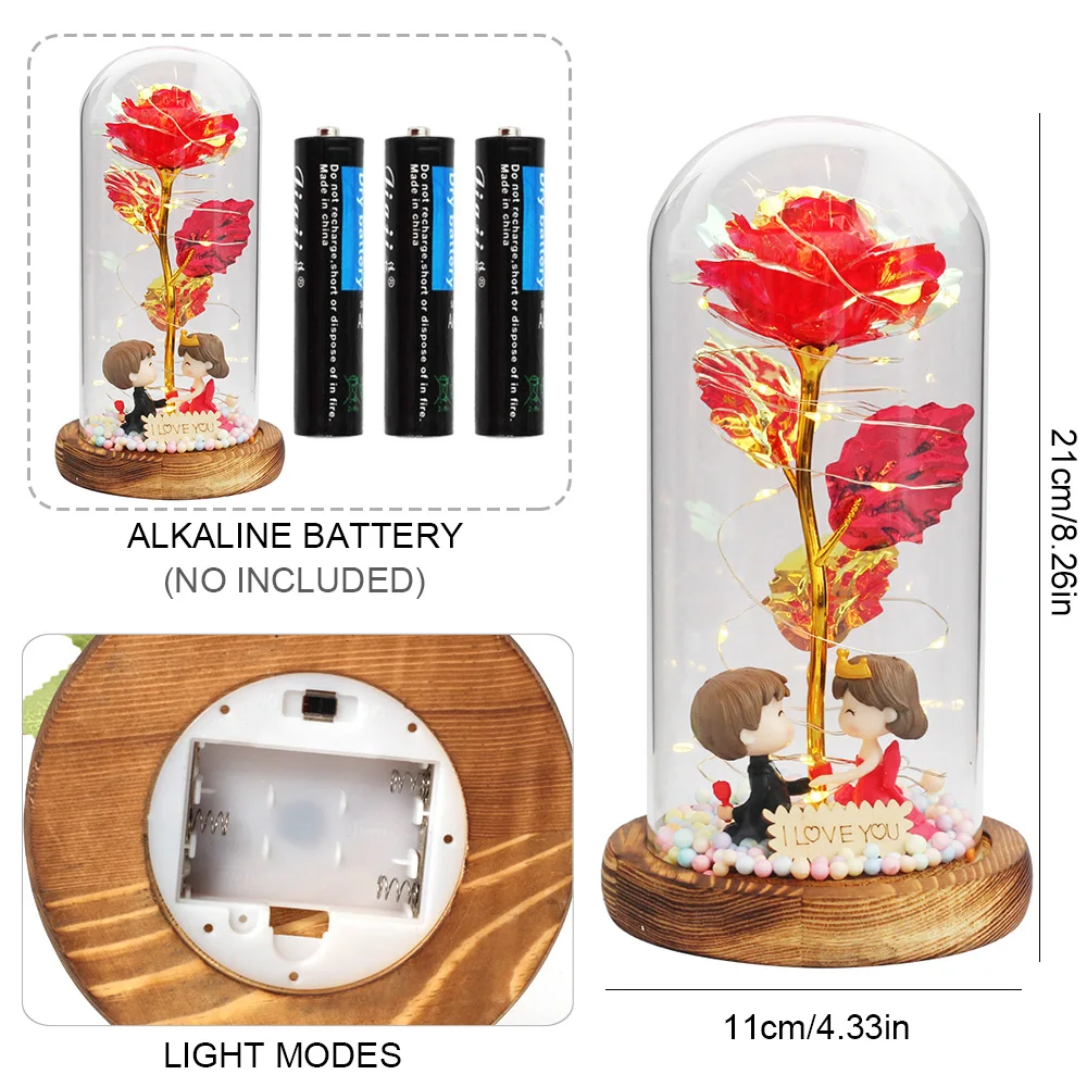 Подарок на день Святого Валентина, искусственная 24-каратная Золотая фольга, Роза в стеклянном куполе, Красавица и чудовище, вечный цветок для свадьбы, Дня матери