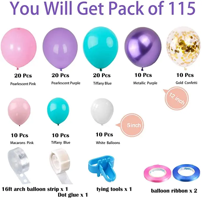 115 шт. воздушные шары для макарон, арка, Русалка, яркий набор, золотой, конфетти, светильник-мятный, зеленый, единорог, шары, шары, детский душ
