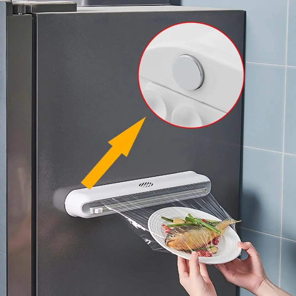 Резак для пищевой пленки, диспенсер для пищевых продуктов, кухонный инструмент, Регулируемый многоразовый настенный цепляющий диспенсер для пленки