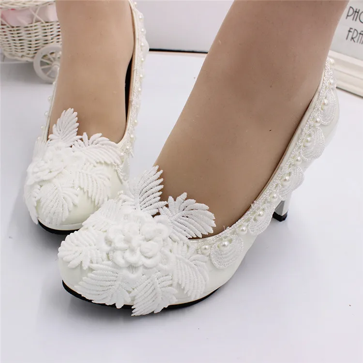 Белые свадебные туфли на высоком каблуке с кружевом; Женские свадебные туфли белого цвета, цвета слоновой кости, белого цвета, с жемчугом; Свадебные туфли на высоком каблуке; Низкий каблук