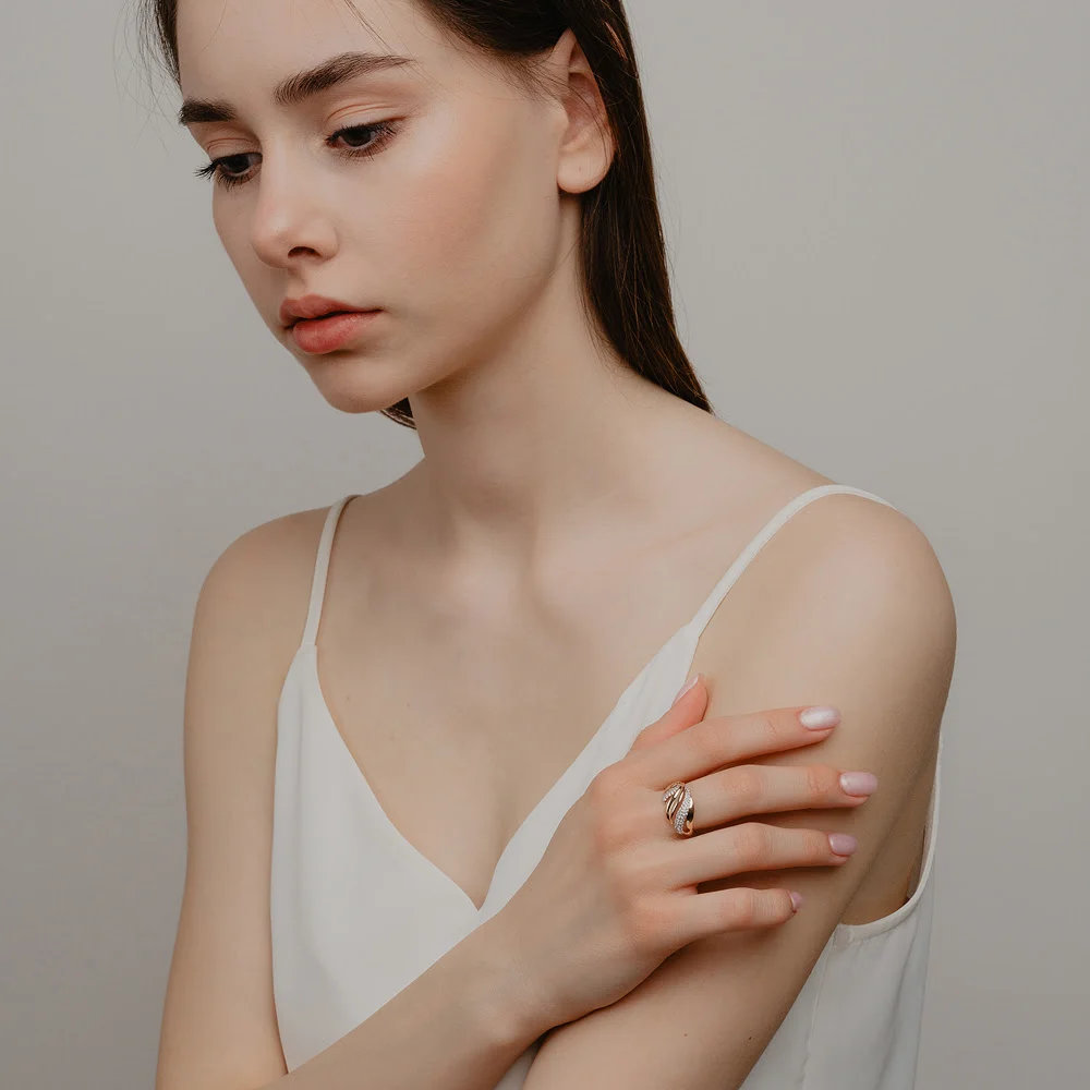 Золотое кольцо с сваровски и фианитами 000-256288 НАШЕ ЗОЛОТО Our gold
