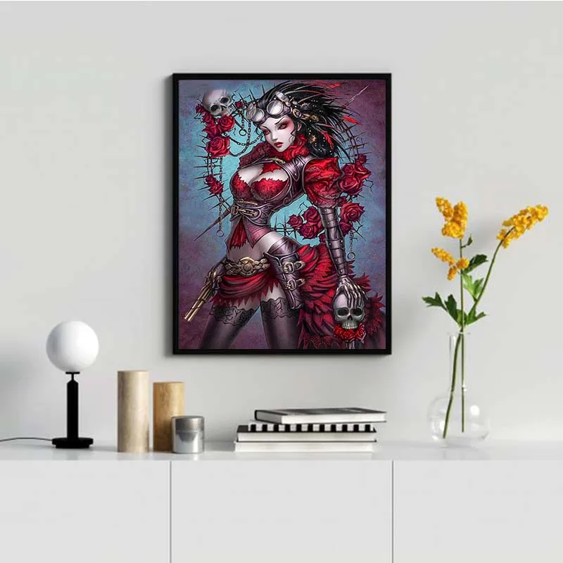 Готическая женщина алмазная живопись ремесла картины 5d роза череп девушка вышивка с Стразы мозаика алмаз искусство наклейки на стену