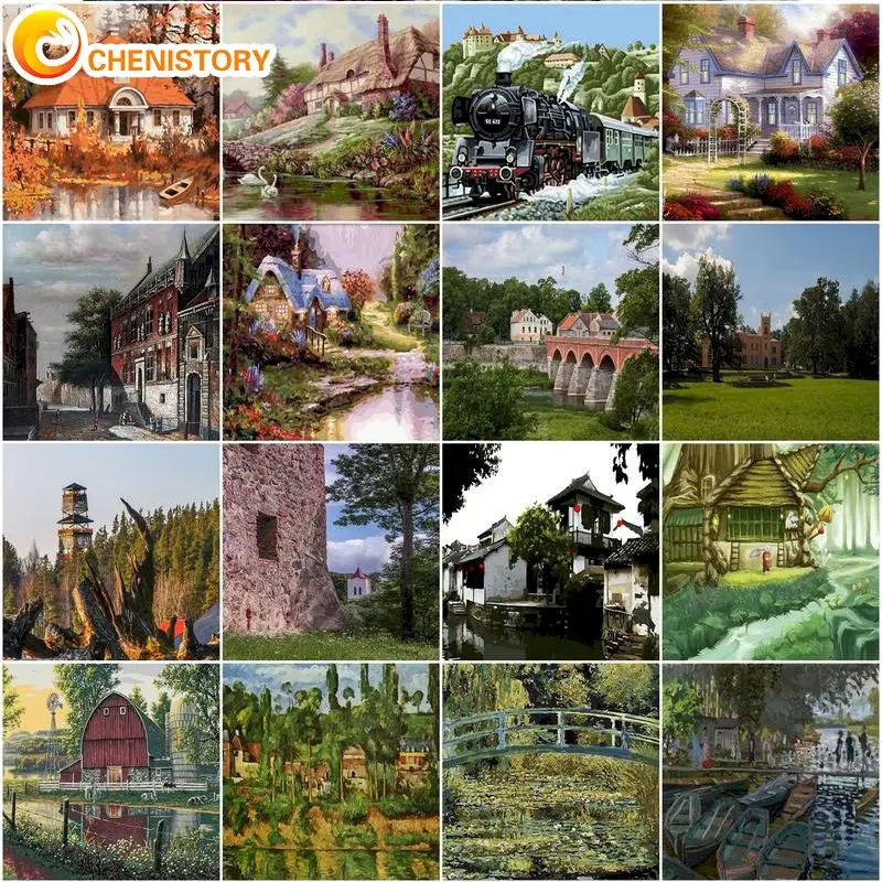 CHENISTORY рамки DIY картина маслом Раскраска по номерам природных Настенная картина по номерам пейзаж живопись на холсте Ручная роспись стены искусства дома деко