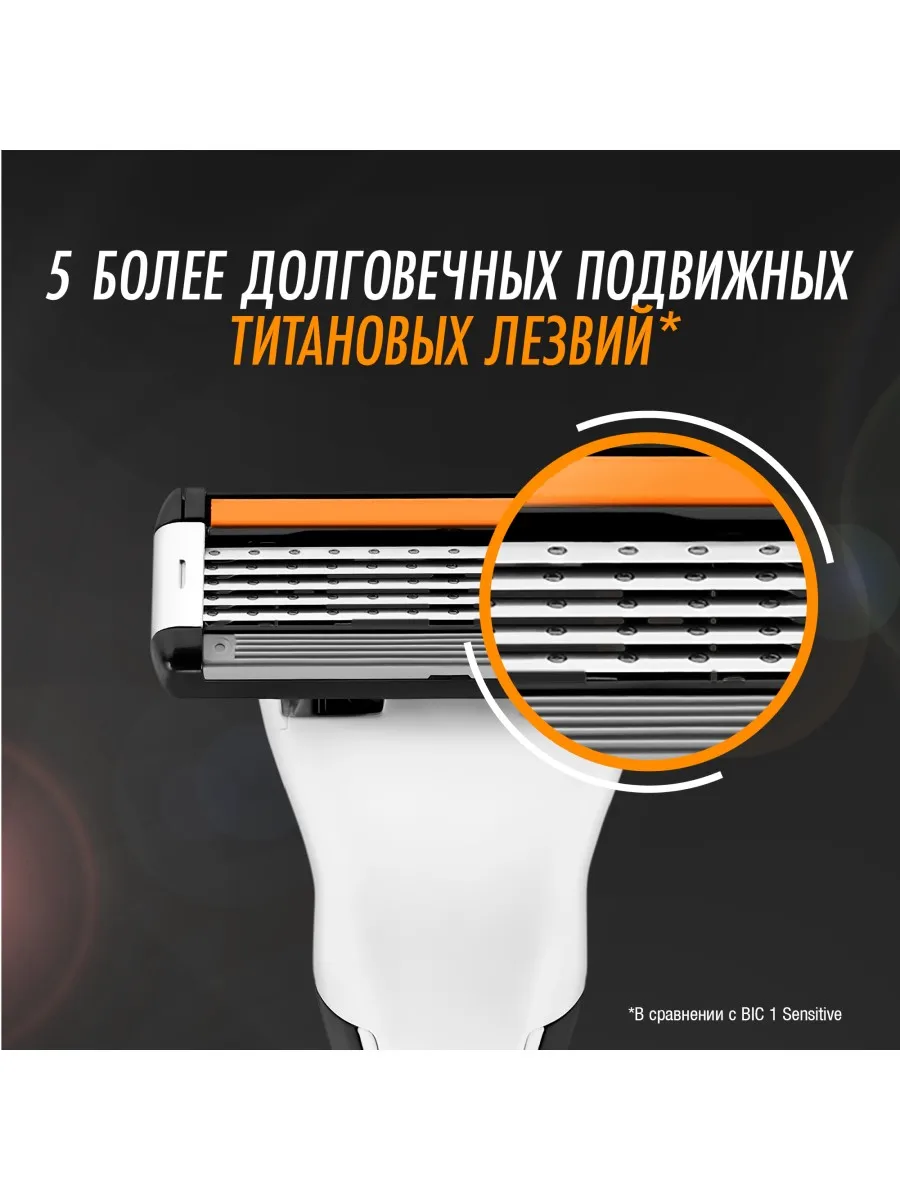 Четыре сменные кассеты с пятью подвижными нанотехнологичными лезвиями для ультрачистого бритья