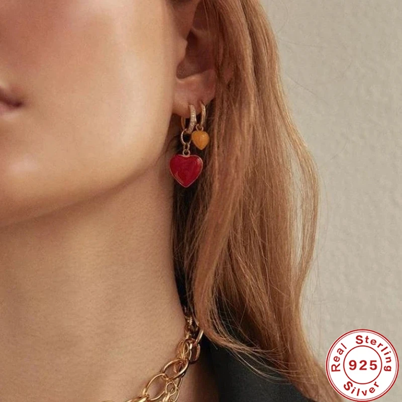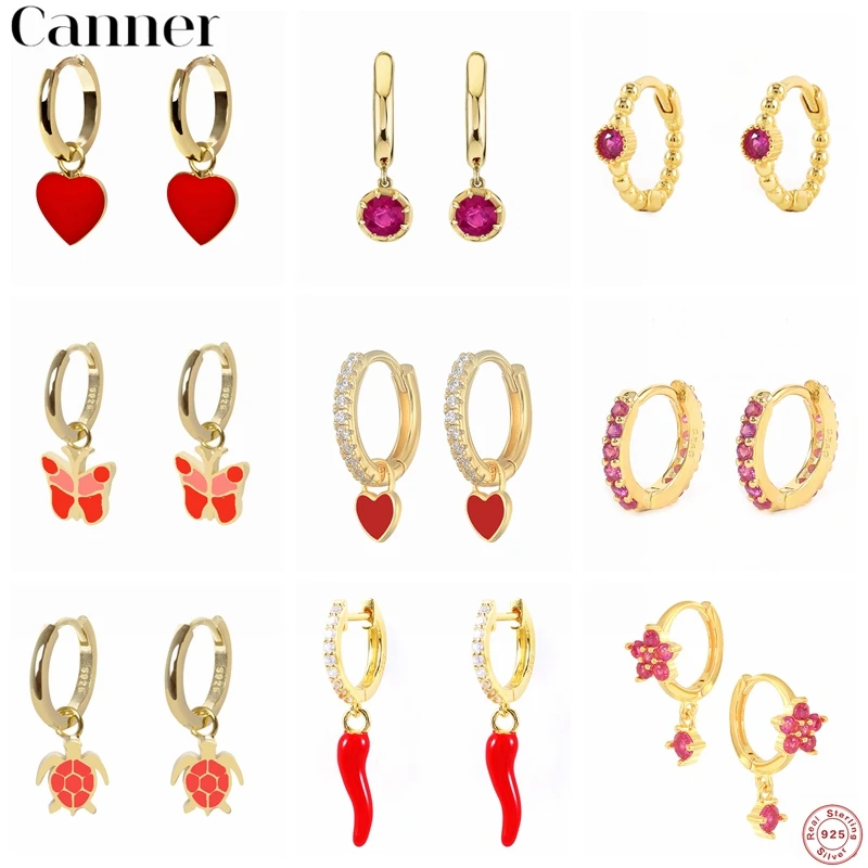 Автоклав 925 стерлингового серебра серьги, Надеваемые На ушной хрящ красный серьги-кольца с цирконом для женщин brincos, можно носить с oorbellen pendientes летние украшения
