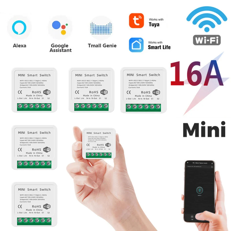 Умный выключатель Tuya Smart Life MINI, Wi-Fi, 16 А, двухстороннее управление, таймер, беспроводной переключатель, автоматизация умного дома, работа с Alexa Google Home