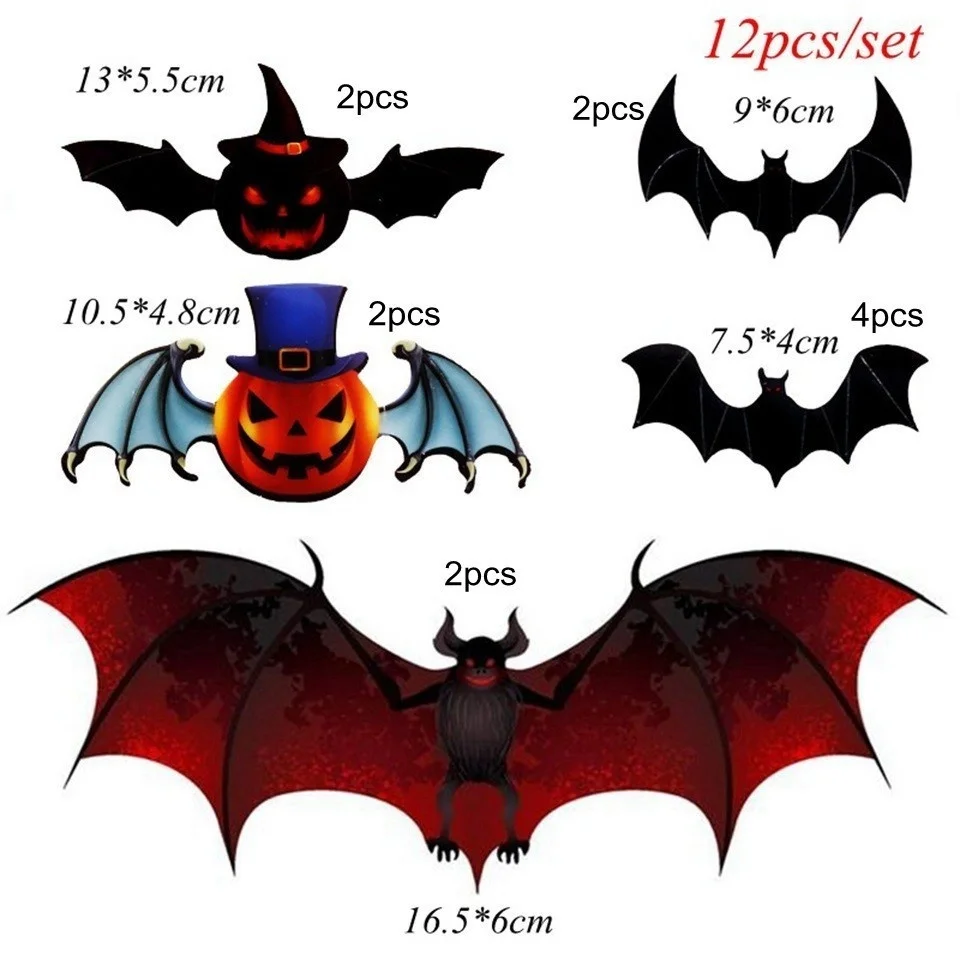 12 шт./компл. 3D ПВХ Хэллоуин летучая мышь Тыква стикер стены s номера Холодильник стикер для Хэллоуина вечерние подарки для детей дома DIY украшения