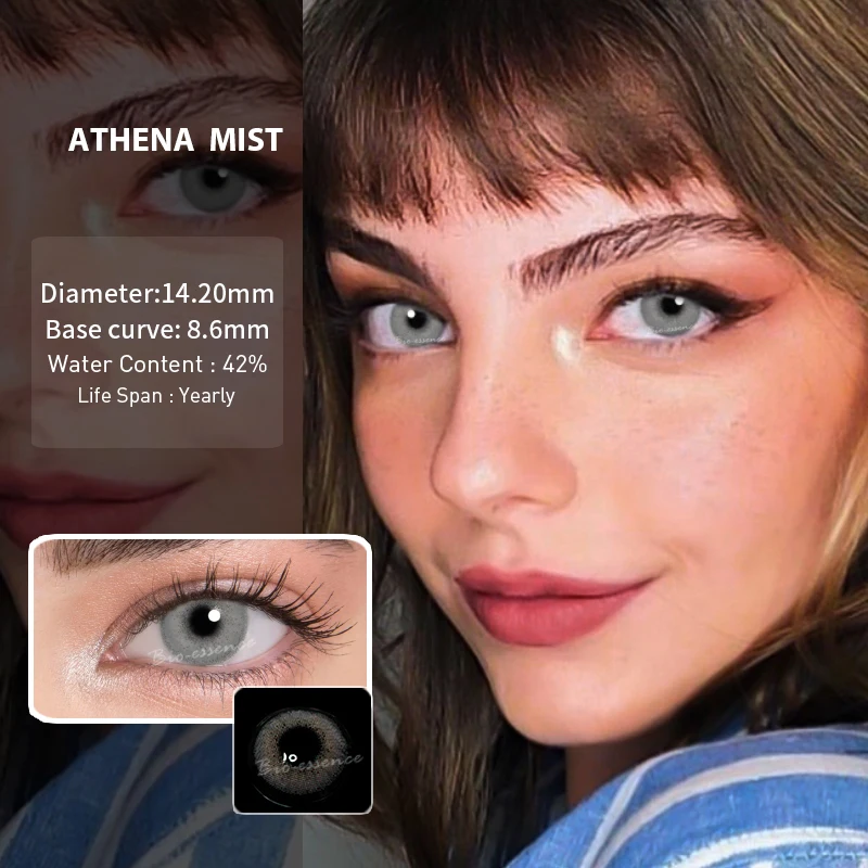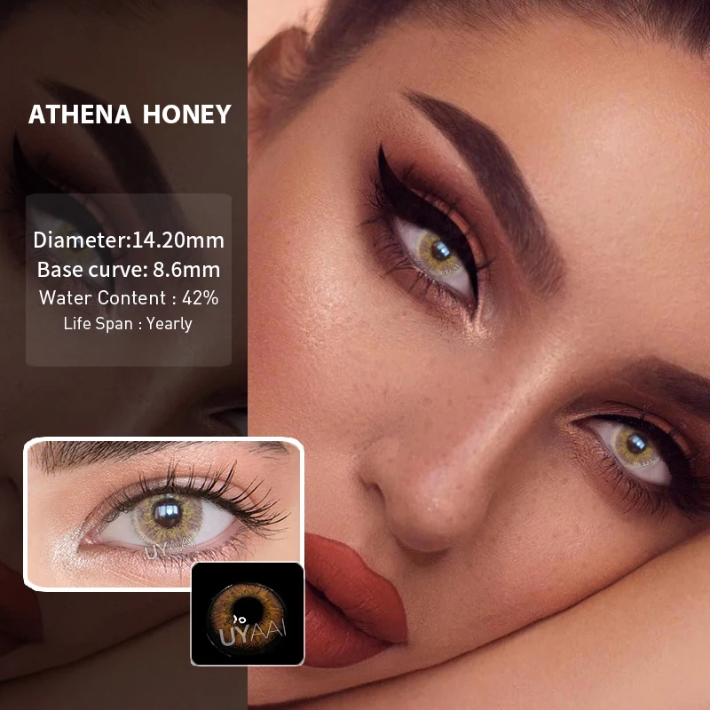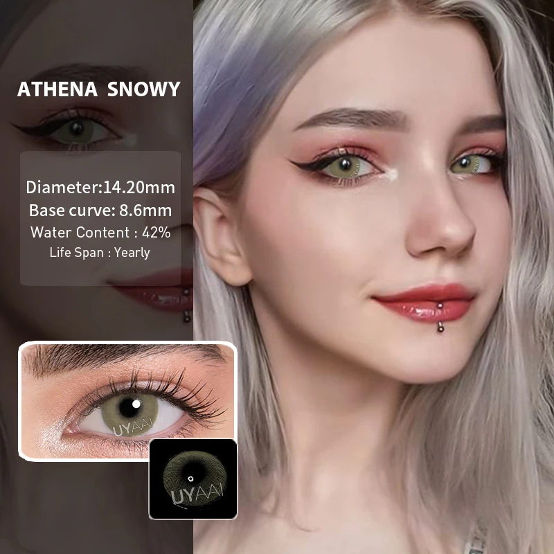 Цветные контактные линзы для глаз UYAAI, 2 шт. (1 пара), ежегодные линзы для красоты глаз, синие, серые, зеленые, цветные контакты с контактным чехлом для глаз