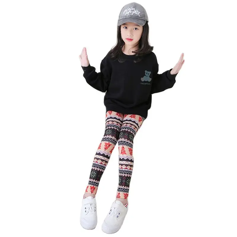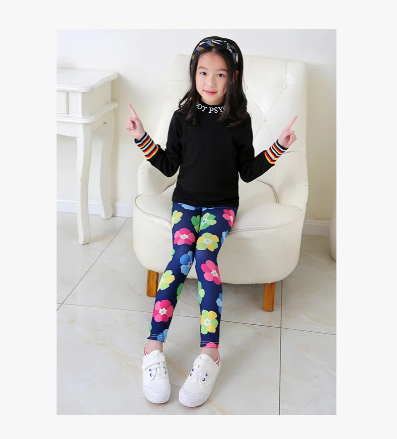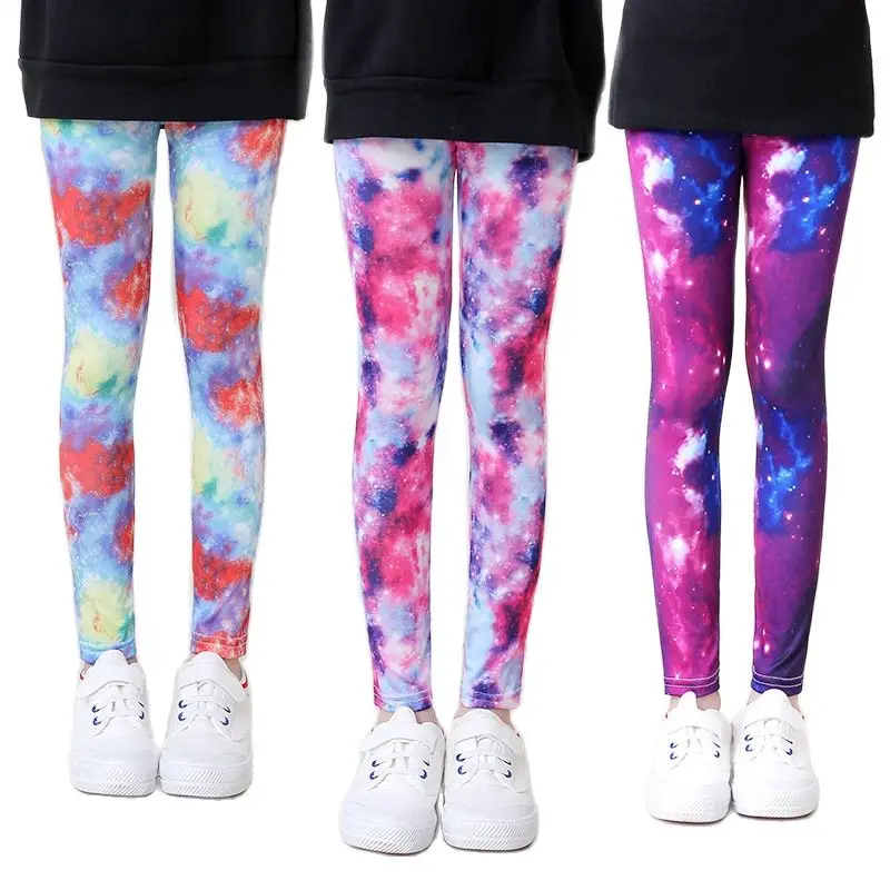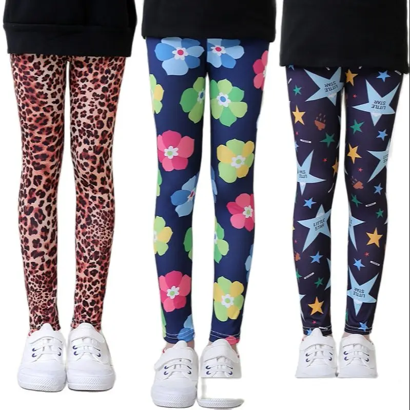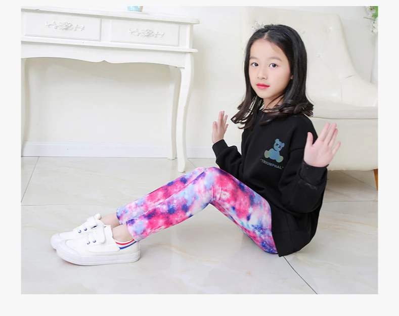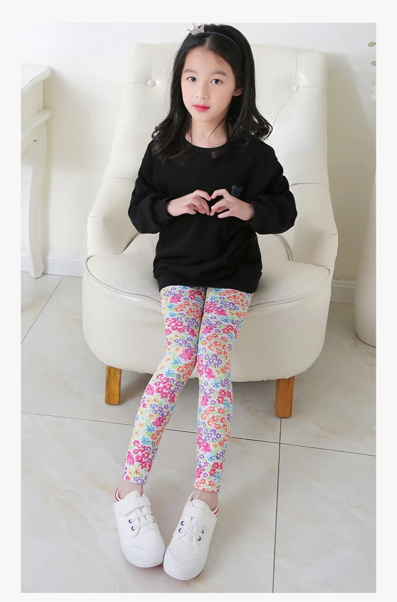 2021 г. Весенне-осенние тонкие обтягивающие шелковые Легинсы молочного цвета для девочек, Стрейчевые брюки с принтом детские штаны среднего и большого размера