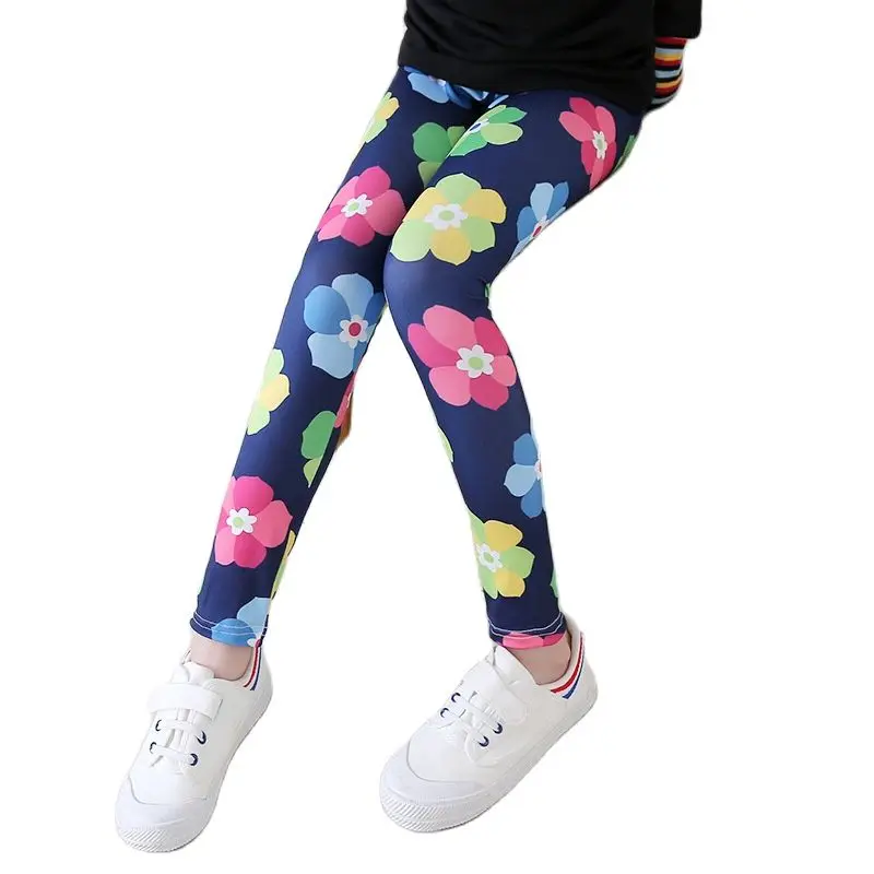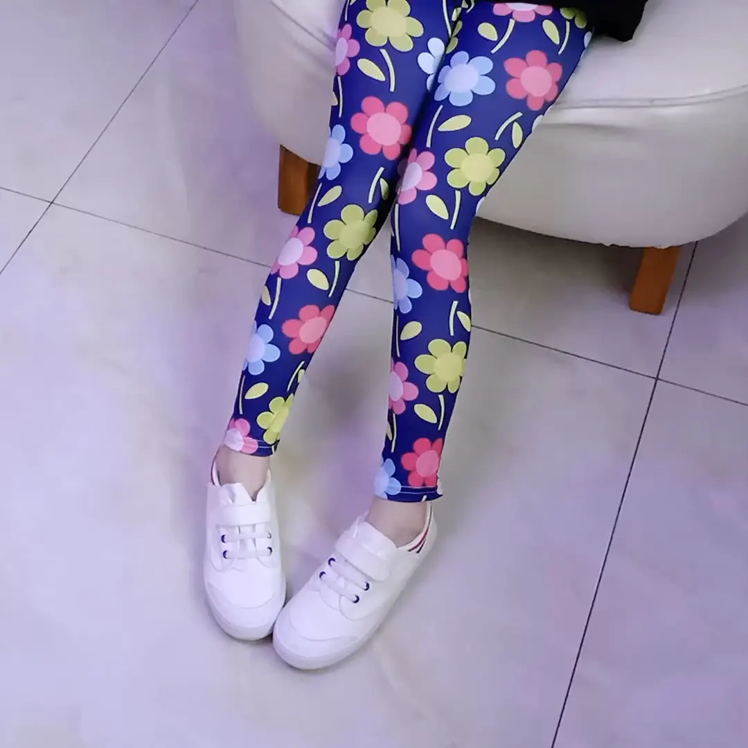Леггинсы детские с цветочным принтом, облегающие Шелковые штаны в п...
