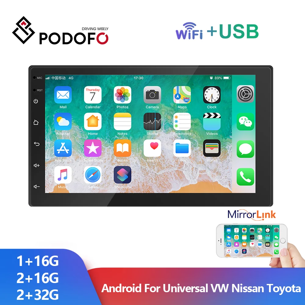 Podofo 2 din 7 "автомобильный Радио GPS Android мультимедийный плеер сенсорный экран WIFI Bluetooth для Volkswagen Nissan Toyota Hyundai Kia
