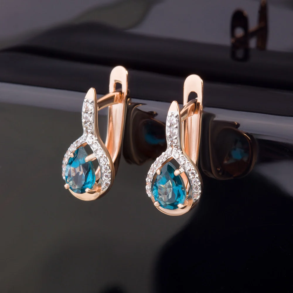 Золотые серьги с топазами и фианитами 000-350553 НАШЕ ЗОЛОТО Our gold
